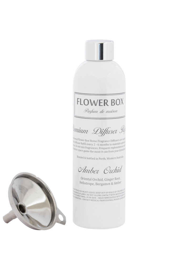 Premium Diffuser Refills can be used either to refill your Flower Box Home Fragrance vessel at the end of its fragrance journey OR to replenish your diffuser throughout its lifespan.